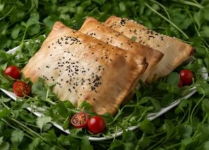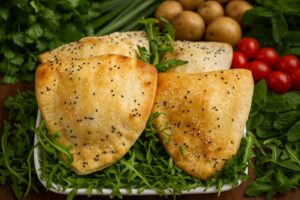 A golden, flaky pastry generously filled with fresh, tender spinach and creamy feta cheese, perfectly seasoned with our signature house blend of exotic spices. Baked to perfection and served with our zesty cocktail sauce for the ultimate indulgence.